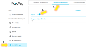 3. Klicka på “Öppet” för att stänga eller öppna Webshopen.